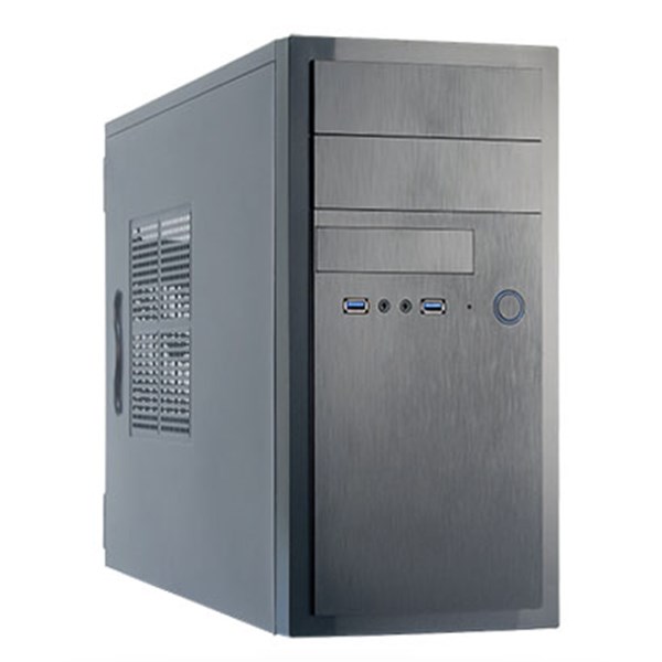 Chieftec HT‑01B‑OP kompakt mATX kabinet med 350W strømforsyning og alu‑look frontpanel
