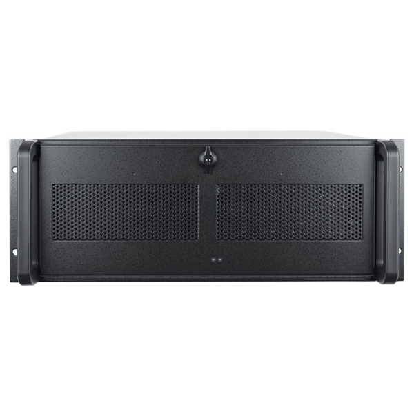 XL-kabinet med solid sidepanel og meshfront – diskret design med maksimal køleeffektivitet.