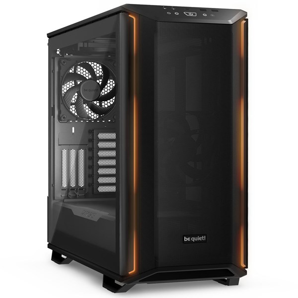 be quiet! Pure Base 600 Window Orange støjdæmpet midi‑tower kabinet med glas og fleksibel køling
