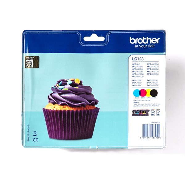 Brother Ink LC‑123VAL Value 4-Pack, Cyan, Magenta, Gul, Sort
