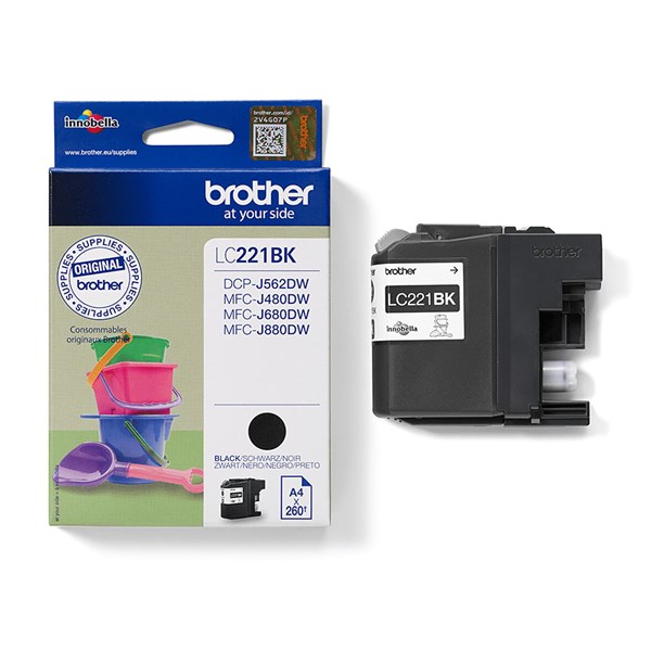 Brother Ink LC221BK, Sort, 260 sider