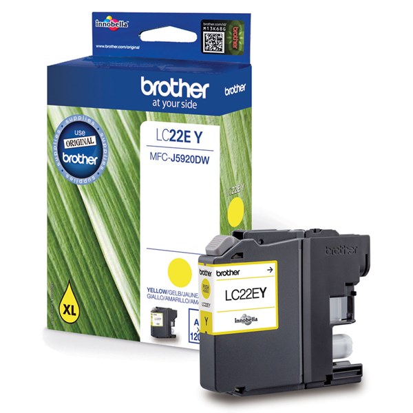 Brother Ink LC22EY, Gul, 1200 sider